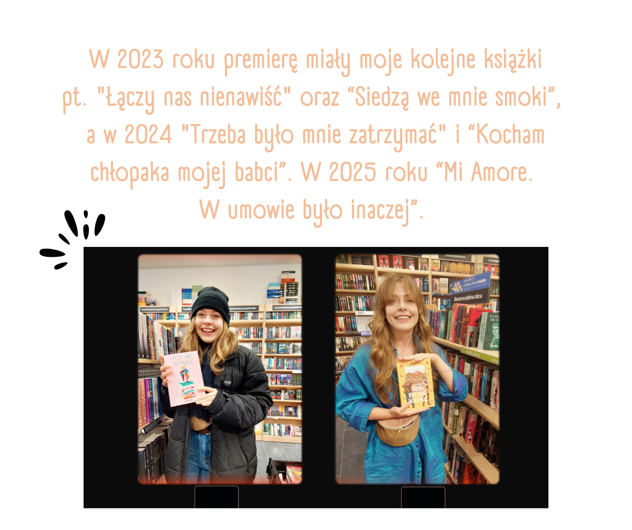 Najnowsza, dopiero kiełkująca część tej strony, która powstała z myślą o moich koleżankach i kolegach, którzy piszą kreatywnie — Kącik Pisarski. Jako że i ja cały czas tworzę i staram się poszerzać swoją wiedzę o tym, jak dobrze pisać książki, postanowiłam dzielić się tym, czego się dowiedziałam, wymieniać doświadczeniami i stworzyć miejsce, w którym będziemy się wspierać.